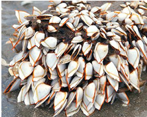 Look for rubbery brown stalks to identify gooseneck barnacles! These are non-invasive and common on marine debris.