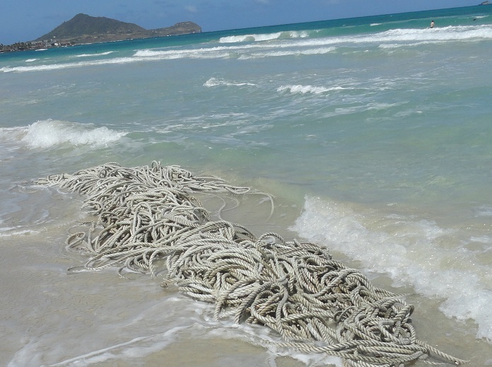 Marine debris consists of man-made objects cast adrift in the ocean, either washed into the water from land-based sources or discarded from vessels at sea.  In Hawaiʻi, marine debris drifts into our waters and comes ashore all year, every year, and, unfortunately, there has been marine debris in our oceans for as long as there have been people to create it with no end in sight.  Marine debris of any size poses a threat to the health and safety of the human population as well as birds, all marine species, and the fringing coral reef that protects our shorelines from erosion.