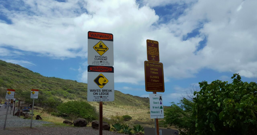 All park users must heed the park’s posted warning signs referring to “Waves break on ledge” as a reminder that these conditions may randomly occur without adequate time to exit the tide pools.