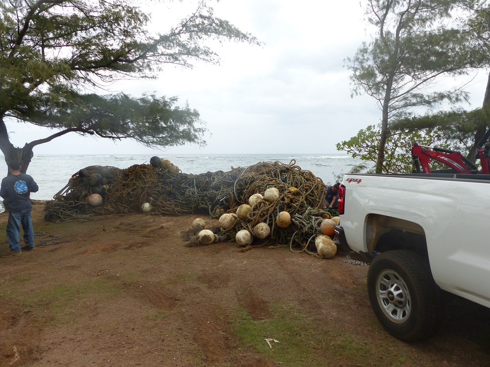 LARGE FISHING NET REMOVED FROM BEACH AT KAPA‘A