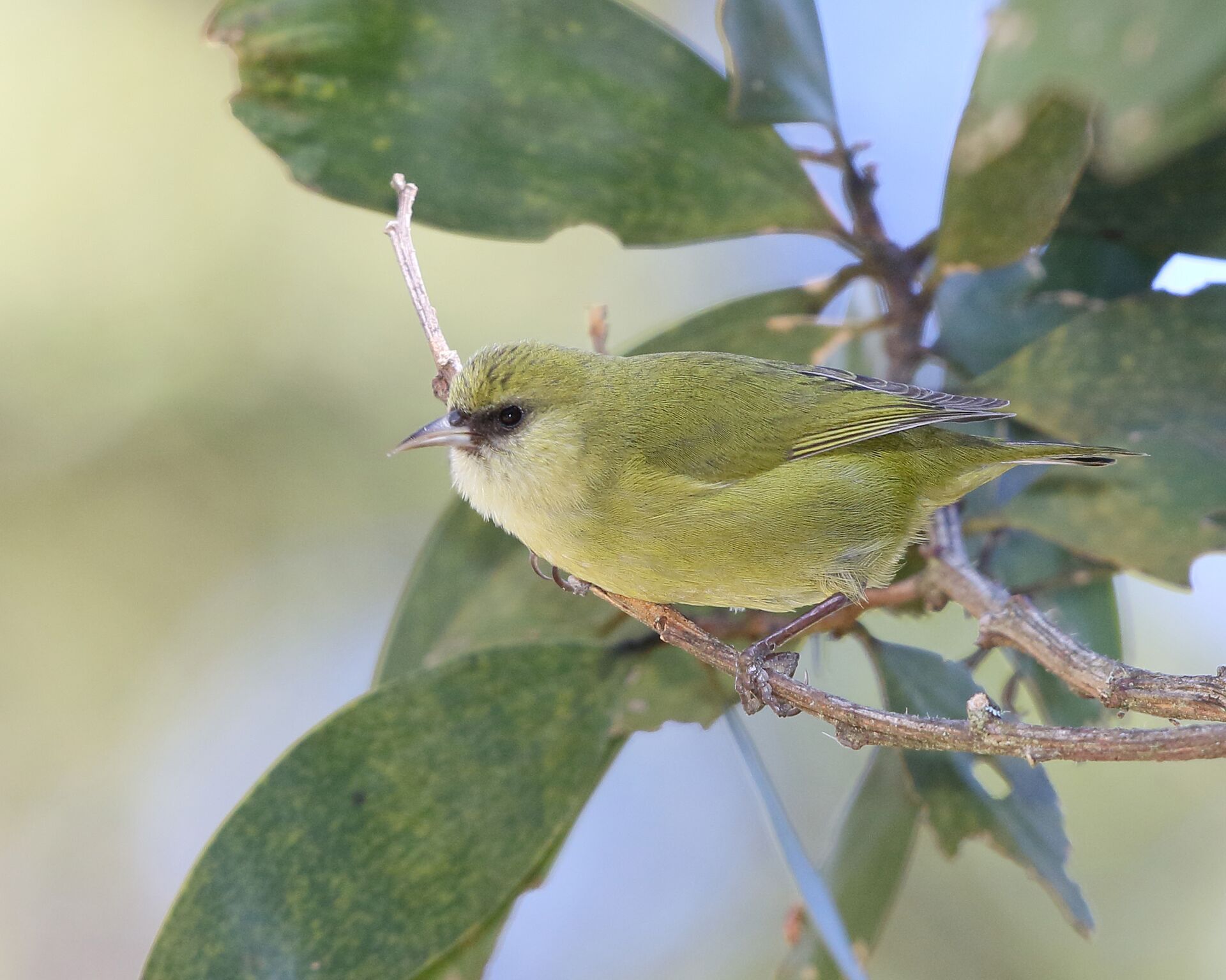 Superficially similar to the Hawai‘i ‘Amakihi, this species was overlooked by Western science until specimens of this “ʻAmakihi” made their way to taxonomists in England. But as its Western name indicates, this species differs from ‘Amakihi, most notably by its behavior. This insectivore favors koa trees (Acacia koa) where it creeps up the trunk of the tree foraging for insects. L. mana has been noted as a bird with a curious nature that leads it to approach humans in the forest.