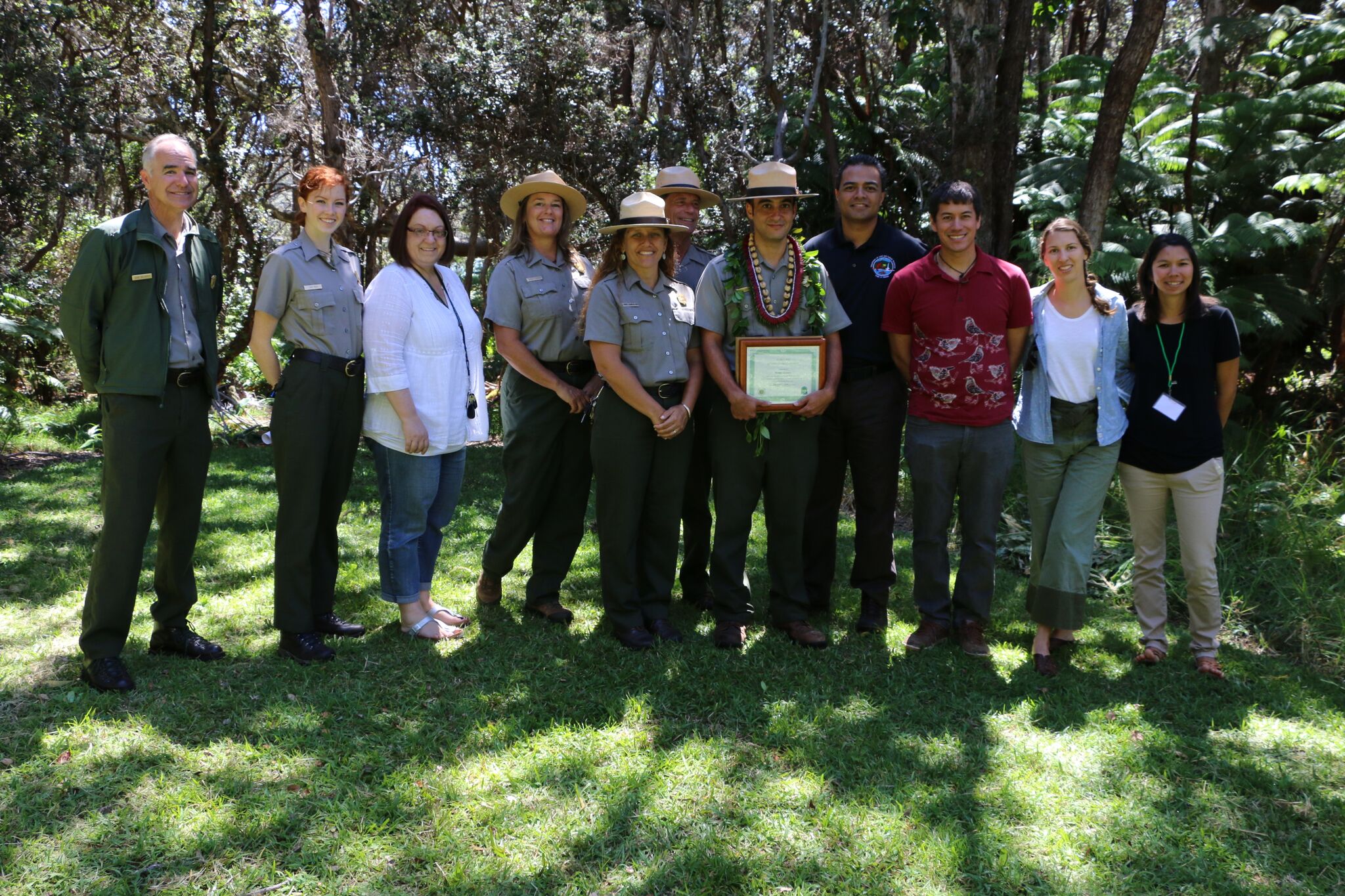 (Hawai‘i Volcanoes National Park) – During a ceremony here today, Noah Gomes was honored with the second DLNR Citizen Conservationist award. Gomes, a Hawai‘i Volcanoes National Park ranger is known here as someone who perpetuates Hawaiian culture in his interactions with visitors and always demonstrates the spirit of Aloha.