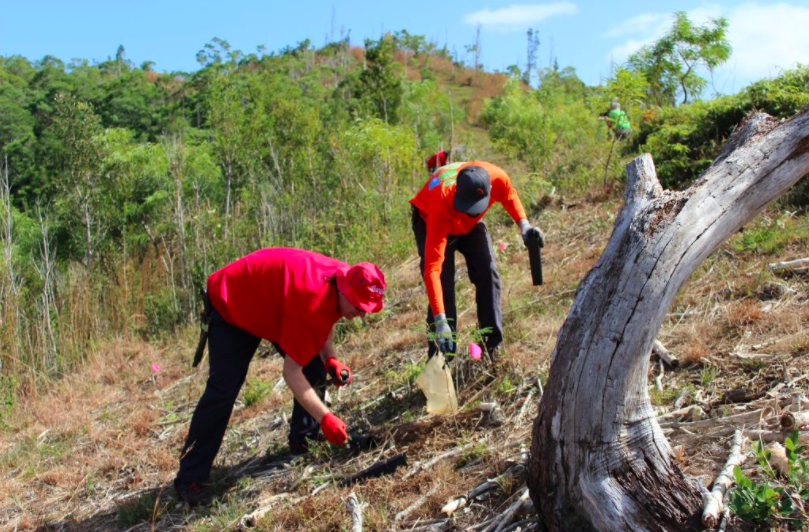 (HONOLULU) – Nine employees of the Coca-Cola Company based in Hawai‘i played hooky from work today. They volunteered on behalf of the Ko‘olau Mountains Watershed Partnership (KMWP) by hiking up a trail on the west side of the mountain range in order to plant native koa. This was a continuation of The Coca-Cola Company’s nationwide commitment to replenish all water it uses in its bottling operations. There are two bottling plants on O‘ahu and last April the company announced it was donating $200,000 to KMWP for ungulate fencing that eventually will surround much of the sprawling Waiawa Watershed, which supplies drinking water to the majority of O‘ahu’s residents.