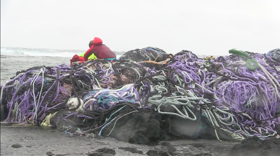 (HILO) – A week ago, University of Hawai‘i researcher Sarah-Jeanne Royer was photographed standing on an enormous tangle of derelict fishing rope embedded on the lava rock coastline of Kamilo Point on Hawai‘i island’s far south-east side.