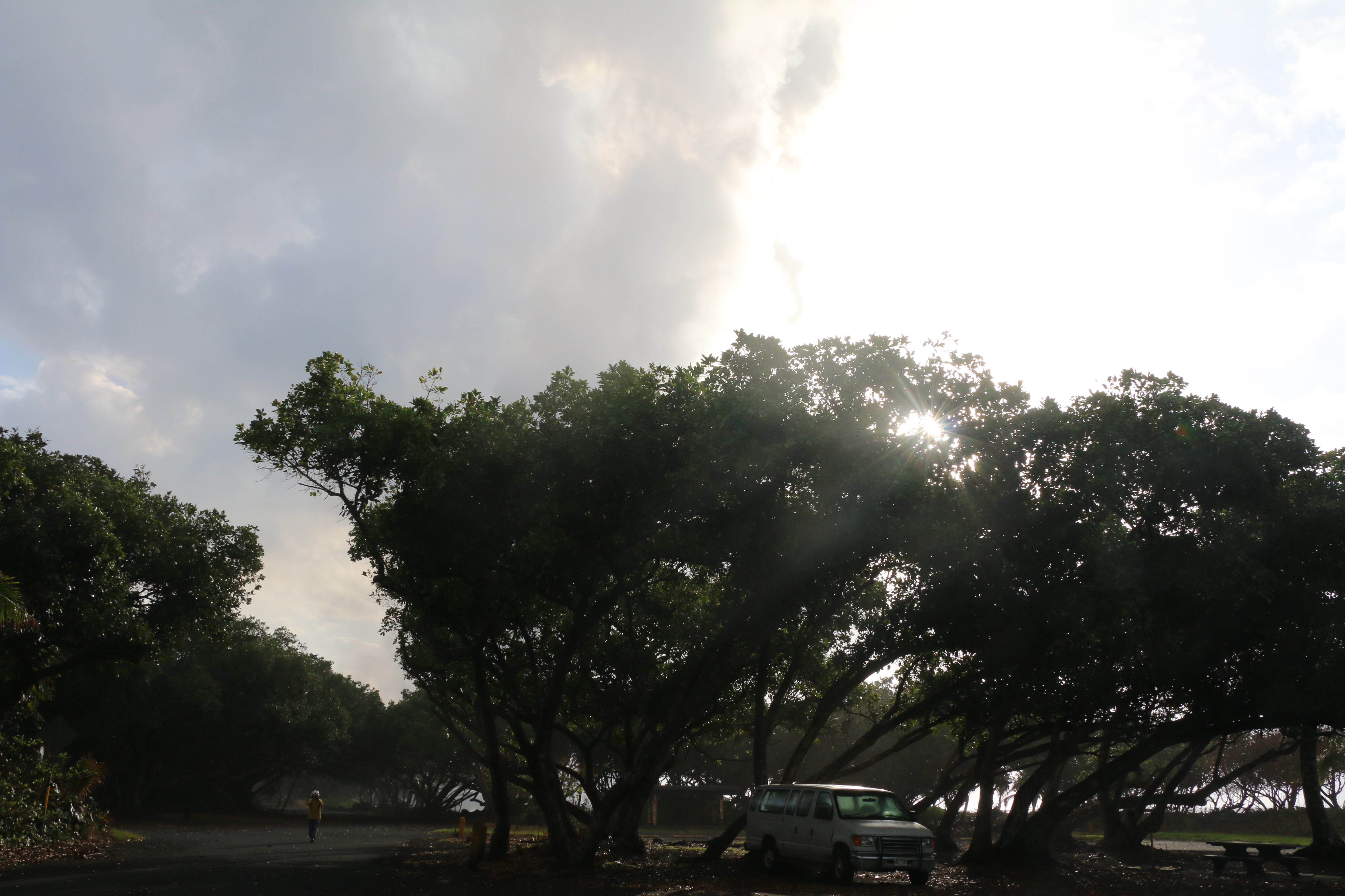 (Hilo) – The flow from fissure #8 is slowly creeping to the State of Hawai‘i’s Pohoiki Boat Ramp adjacent to Hawai‘i County’s Issac Hale Park. During an assessment of eruption impacts today, steam and volcanic gasses from the nearby ocean entry wafted over the tall trees in the park’s now empty parking lot. Stephen Schmelz, Hawai’i Island Branch Manager for the DLNR Division of Boating and Ocean Recreation (DOBOR) estimates the lava, if it maintains its current course and speed, could overtake Pohoiki and Issac Hale Park within the next few days.