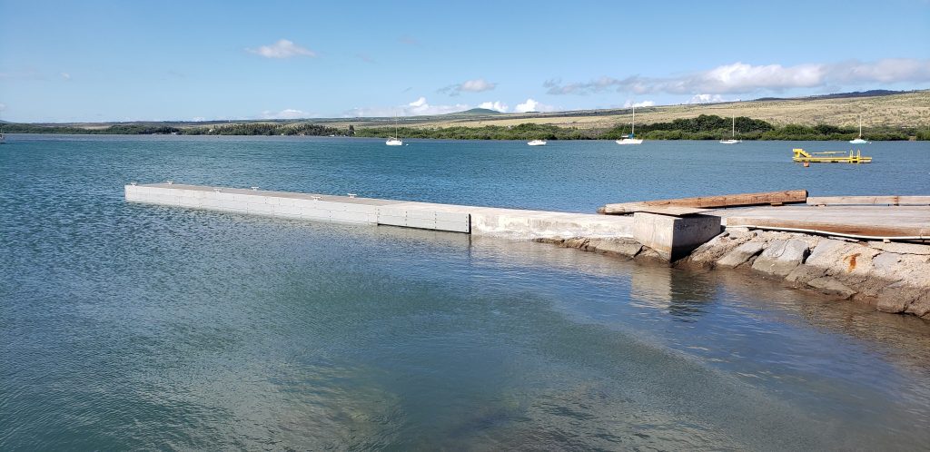 KAUNAKAKAI, MOLOKAI — A project at Kaunakakai Small Boat Harbor is underway to remove an existing wooden loading dock and replace it with a new aluminum framed loading dock with plastic lumber fenders and fiber reinforced plastic decking. Work is scheduled to be completed by November 15, 2018