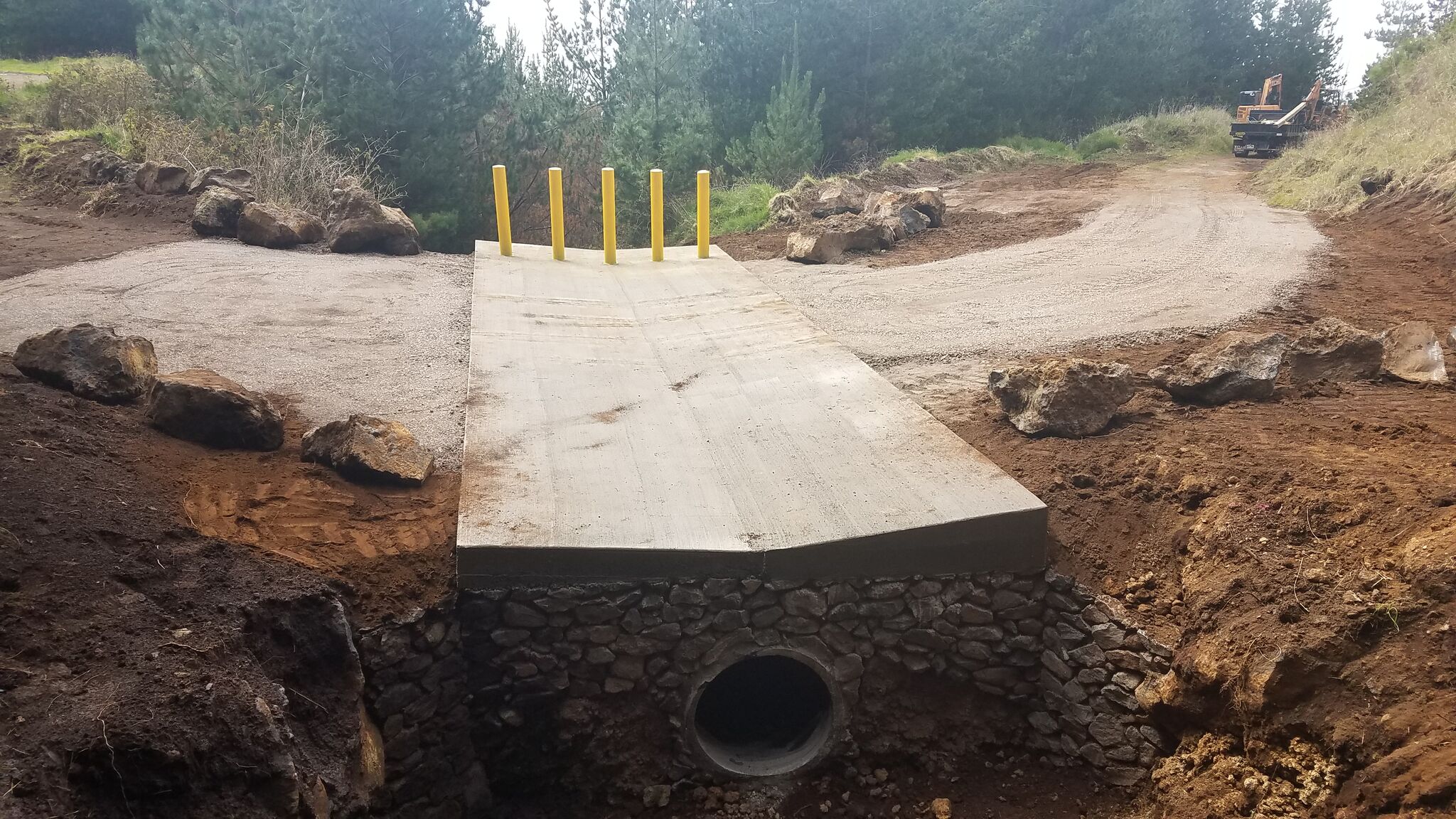 Vares Contracting Inc was hired to install a drainage culvert across a section of the unpaved access road. In the past several years, heavy rains causing copious amounts of runoff would wash out this section of the road because there was nothing in place to channel runoff/water across the road. This situation often required temporarily closing the forest reserve to conduct road repairs using heavy machinery and man hours. This improvement will now allow for safe travels across this section of road during high rain events.