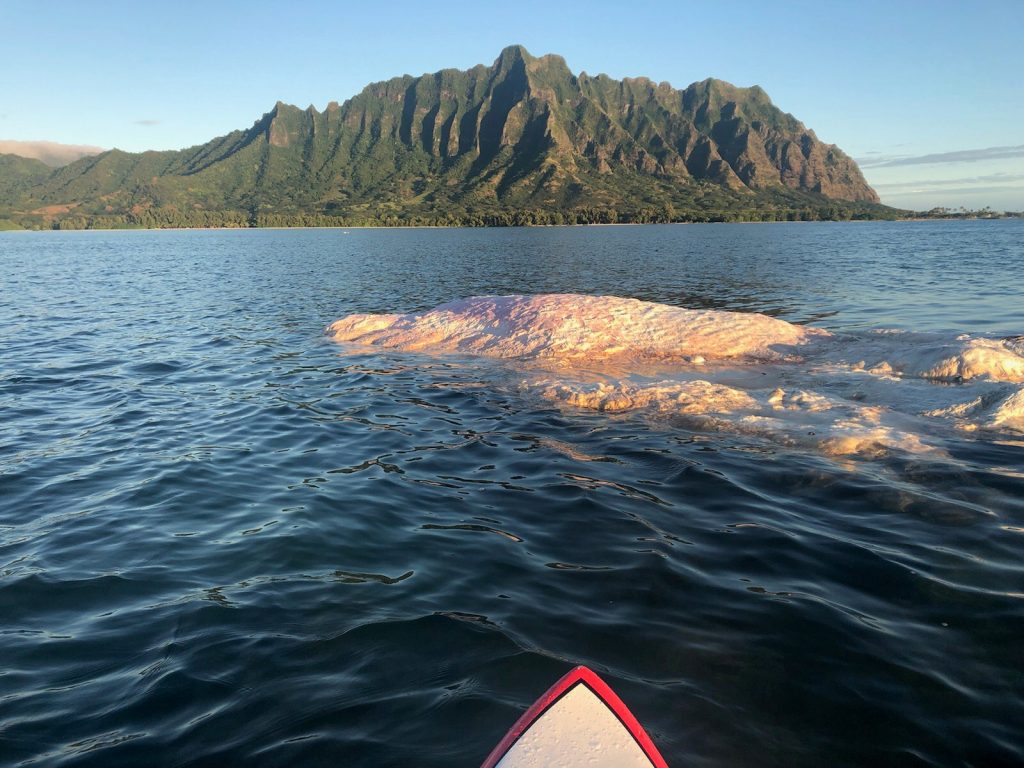 (Honolulu) – Experts from state and federal agencies have agreed that the best option for a whale carcass found stuck on a reef in Kaneohe Bay on Tuesday, is to leave it where it’s at for now. The large and badly decomposed whale carcass is on a patch reef in the northern part of the bay, about a mile off shore. It appears at this time that winds and waves will not bring it into land.