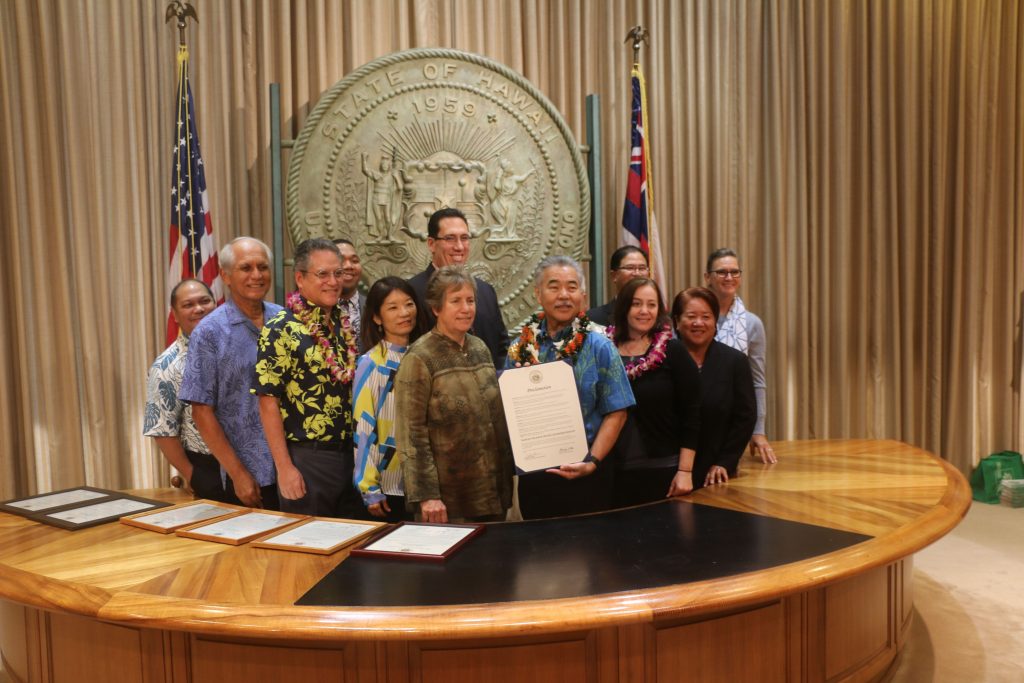 (Honolulu) – During a ceremony today at the Hawai‘i State Capitol, Governor David Ige proclaimed February as Hawai‘i Invasive Species Month. This long-standing recognition is intended to bring additional attention to the issue of invasive species.  Simultaneously five individuals and four organizations were recognized by the Governor and legislative leaders as Hawai‘i Invasive Species Committee Most Valuable Players for 2019.