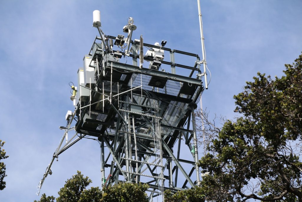 (Pu‘u Maka‘ala Natural Area Reserve) – Towering above the highest trees in this Hawai‘i Island Natural Area Reserve, a 105-foot-high meteorological tower, with millions of dollars of high-tech sensing equipment attached to it, is the final component of the National Ecological Observatory Network or NEON.