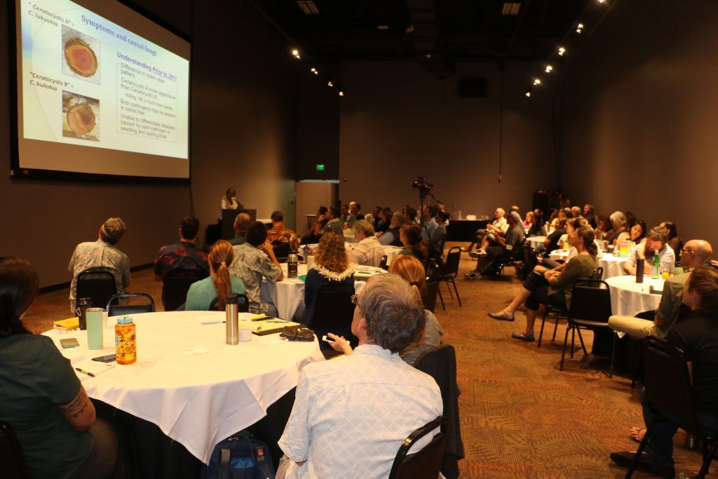 (Hilo) – This week top scientists and managers engaged in the fight against Rapid ʻŌhiʻa Death shared knowledge, their latest research findings, and discussed next steps in battling the fungal disease that has killed millions of ʻōhiʻa trees, primarily on Hawai‘i Island, but also on a much more limited scale on Kaua‘i.