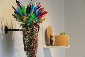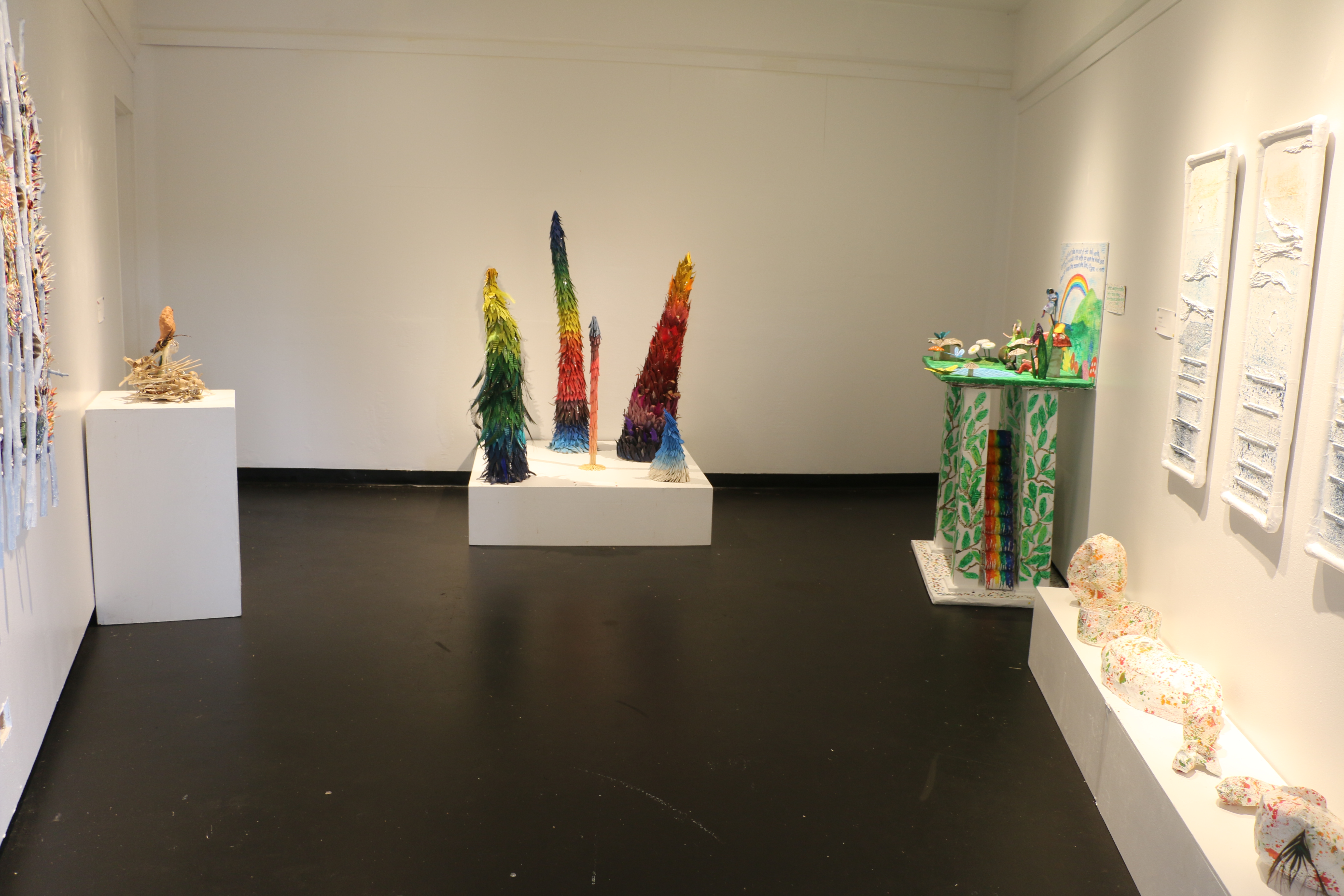 The long-time State Parks Interpretive Center Coordinator, Codi King, explained, “It’s ten artists that are each given a space and they have ten materials that they can use. One is by their choice and the other nine are materials that we chose. This ‘installation art’ gives them a new outlook on their art and gives then an out-of-the-box experience because this tends to push them to their creative limits.”