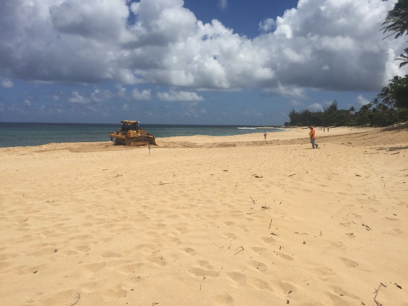 Sam Lemmo, Administrator for the DLNR Office of Conservation and Coastal Lands (OCCL) said, “Our State’s sandy beaches are the last line of defense against rising seas and chronic shoreline retreat. It is critical that we enable actions, where environmentally appropriate, to reduce the rate of erosion utilizing soft erosion control measures like beach restoration and sand pushing.”