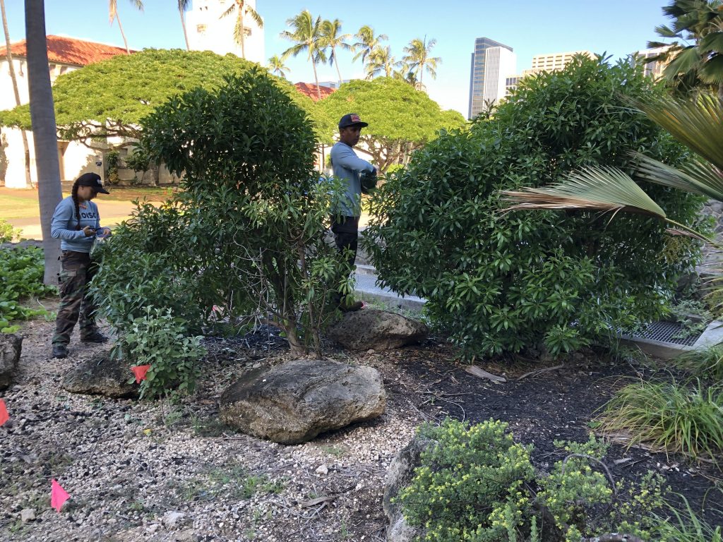 Thrips were recently discovered at the State Kalanimoku Building native garden. They’ve been removed by O’ahu Invasive Species Committee (OISC) staff. The crew clipped off the infested ends, removed entire plants and transported them to H-Power to be burned. A few months ago, thrips were also discovered in DLNR Chair Suzanne Case’s yard.