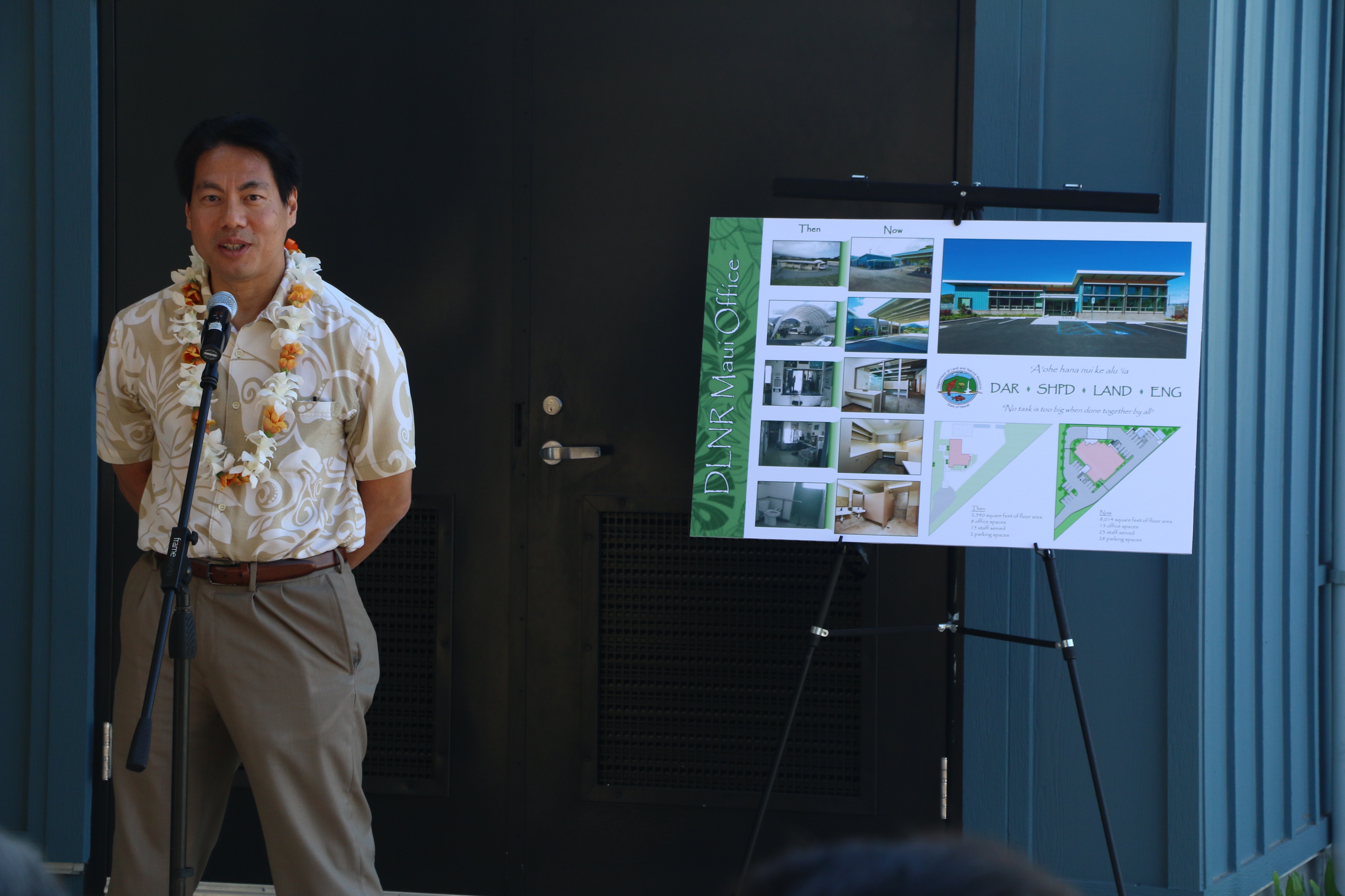 “It’s so exiting to be here for the opening of the new building, especially having been able to be here for the groundbreaking,” said Case. “To see this place become fully alive is just a wonderful opportunity. And we want to thank legislators so much for their supporting the construction of this building. It’s so important for all divisions of DLNR to work together, to meet with each other and meet with constituents and stakeholders in a central location., This beautiful building will enhance the really important work DLNR staff performs for the people of Maui Nui.”