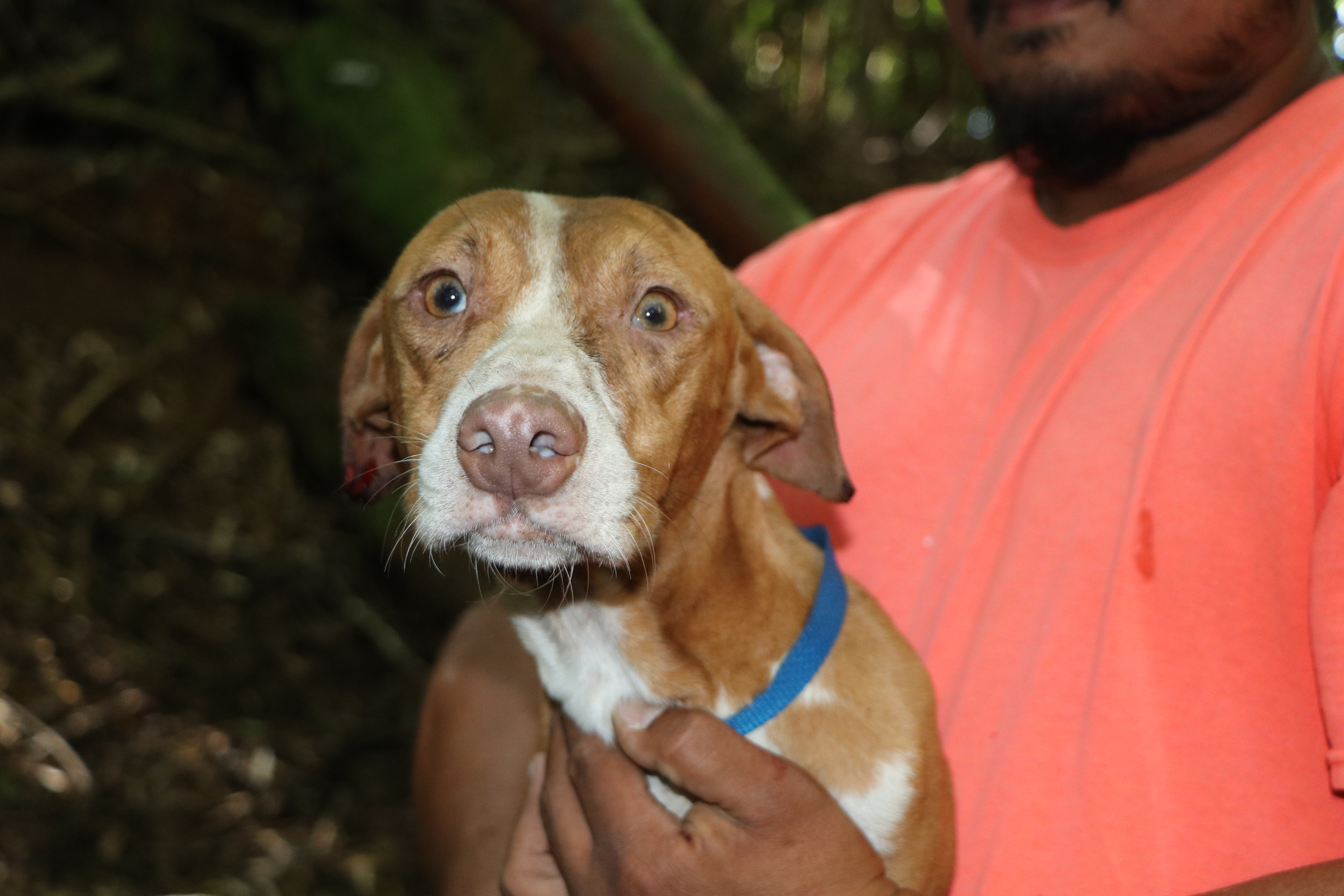 Animal control officer Kewehi Harris of the Kaua‘i Humane Society was on hand to take Orange in to be checked by a veterinarian. Like all who witnessed today’s rescue she was impressed with the dogs relatively good condition.