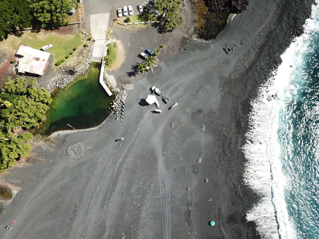 (Pohoiki, Hawai‘i Island) – An enormous and ever-growing black sand beach is not the only new feature at Pohoiki, the site of a former boat ramp, rendered obsolete after being surrounded by lava.  Biologists from the DLNR Division of Aquatic Resources (DAR) have noted at least seven anchialine pools dotting the Pohoiki landscape.