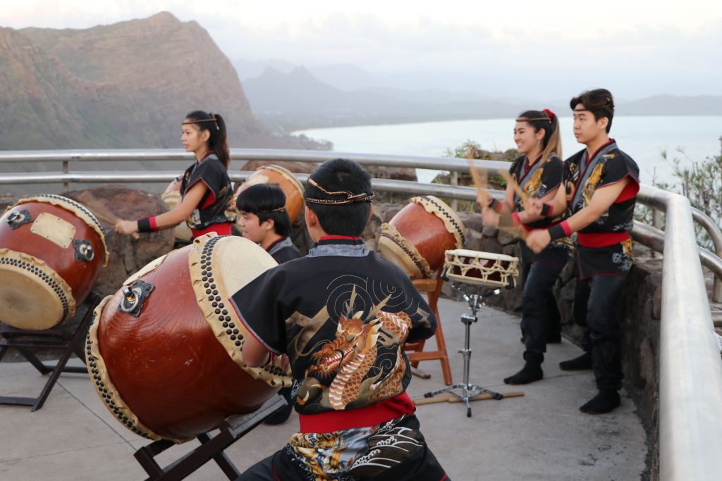 As in the past, the Asian culture, was represented by the young drummers of the Taiko Center of the Pacific. And finally, the European culture was represented by four bagpipers. All three performances were warmly received by the hikers, some who make the trek an annual affair and many others who made the hike for the first time.