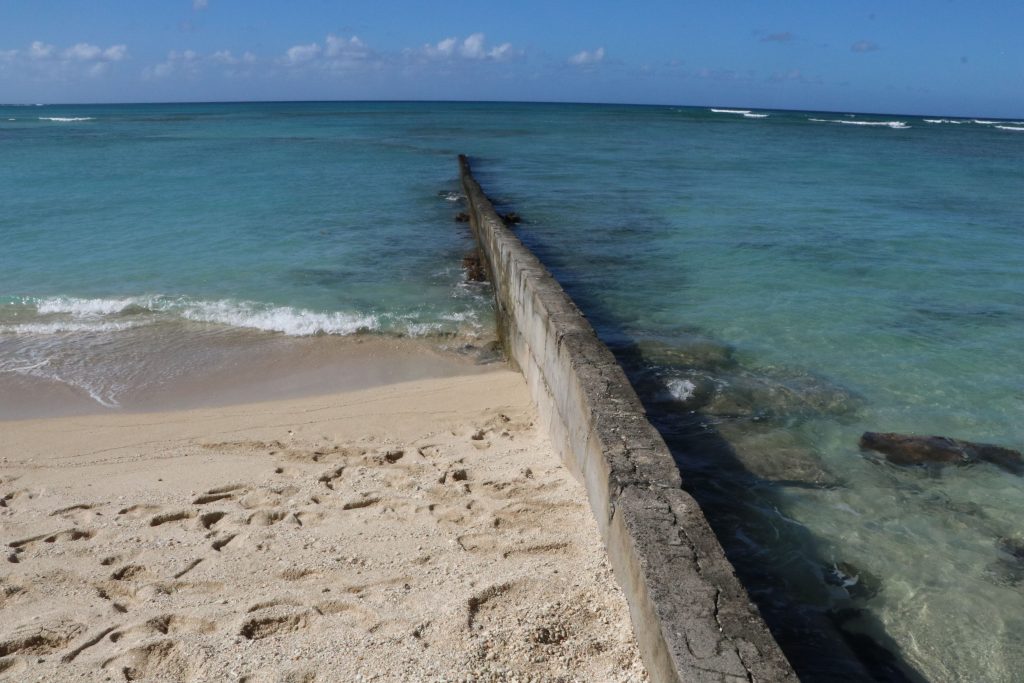 (Honolulu) – The existing Royal Hawaiian groin was installed 93-years ago and for decades it protected one of the most popular stretches of beach in Waikīkī. The virtual shut-down of Hawai‘i’s visitor industry during the COVID-19 crisis is providing a rare silver-lining. Next week, the DLNR Office of Conservation and Coastal Lands (OCCL), in partnership with the Waikīkī Beach Special Improvement Association (WBSIDA), is kicking off work on a modern replacement groin, with construction work made much easier and safer without hundreds of visitors on the beach.