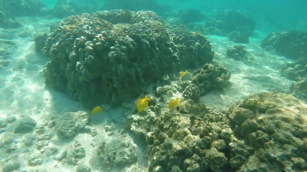 The COVID-19 crisis has provided the opportunity for the bay and its inhabitants to rest. Hawai‘i County’s Kahalu‘u Beach Park has been closed, and now the Kahalu‘u Bay Education Center (KBEC), a program of The Kohala Center, along with the DLNR Division of Aquatic Resources (DAR), are asking everyone to voluntarily refrain from swimming and snorkeling in the bay, particularly during the week of May 10-16 to enhance upcoming spawning of cauliflower coral (Pocillopora meandrina).