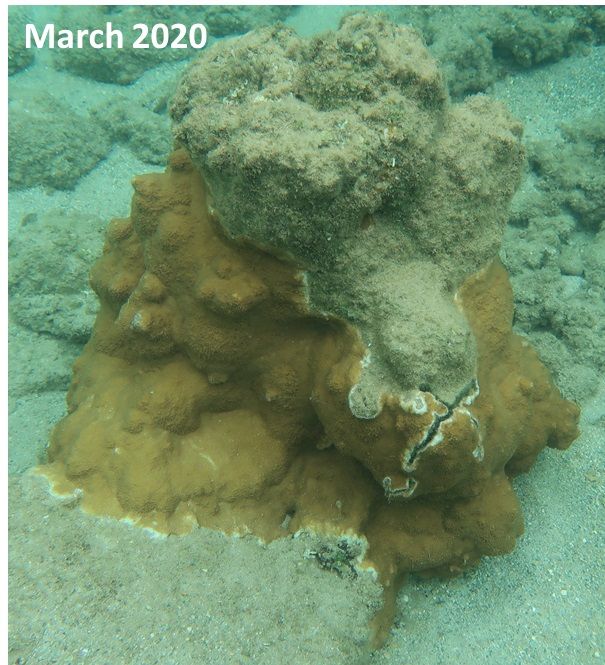 Although the Kauaʻi monitoring team observed encouraging signs of recovery and new growth, they also observed signs of coral death, likely due to diseased colonies that could not fight off the infection or recover from severe bleaching. DAR aquatic biologists believe that changing seasons bringing north swells to flush out the protected waters of the inner reef and cooler sea temperatures allowed recovery on the reef to happen.