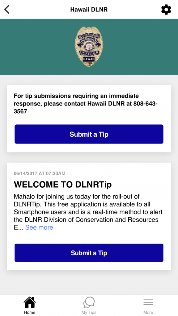 (Honolulu) – Hawai’i’s official application for reporting natural resource violations is receiving a major update. The DLNRTip App now includes ​new features that allow ​users  to choose an island when submitting a tip. This sends the tip directly to the appropriate DLNR Division of Conservation and Resources Enforcement (DOCARE) branch.