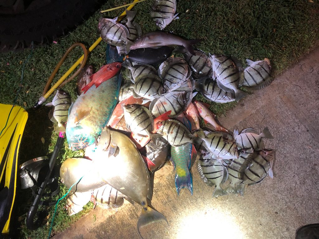 All of the diver’s gear was taken into evidence and all of the fish were returned to the ocean. All of the divers were educated on Hawai‘i Administrative Rules regarding fishing in the MLCD and FMA. All of the divers were cited for numerous violations, including prohibited activities, not displaying a dive flag, and having undersized fish in their possession. They have court dates in September and could face fines and/or jail time.