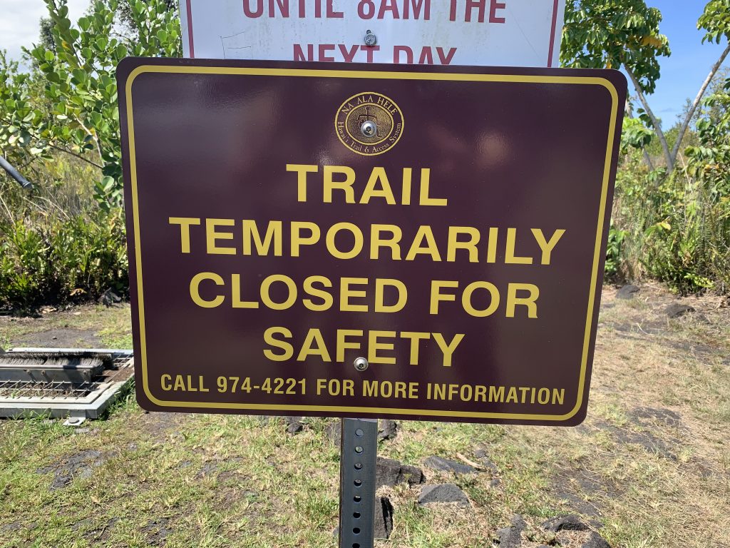 The Department of Land and Natural Resources supports all county and state rules in an effort to reduce the chances of coronavirus infection on Hawai‘i island, which recently, like O‘ahu, has experienced a surge in cases. Closed signs were put up at the trailhead this afternoon and the WH Shipman Estate which co-manages the trailhead parking lot with the State supports closures, as enforcement is difficult at the remote Hā‘ena beach. County and State law enforcement officers will be patrolling all closed areas this weekend to ensure compliance with all emergency rules.