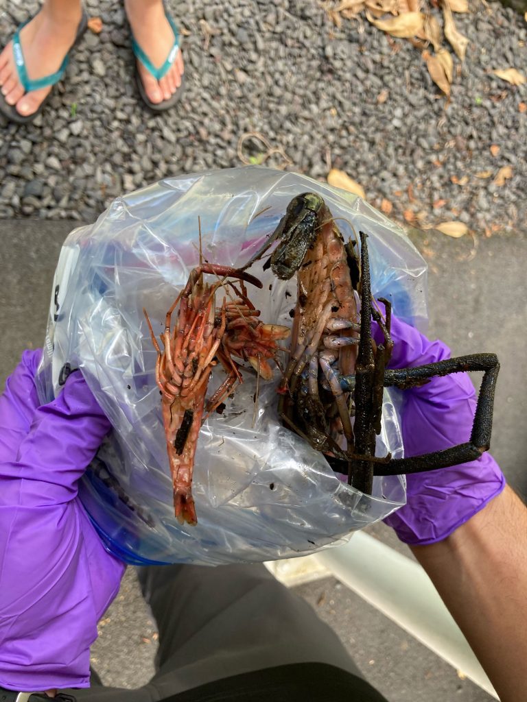 DOCARE officers have collected samples of Tahitian prawns, water, and sediment to verify poisonings after photographs showed mass die-off’s of this popular local delicacy. Some photographs show prawns dying in streams or on their banks. Officers believe this indicates the prawns tried to get out of water that had been poisoned.