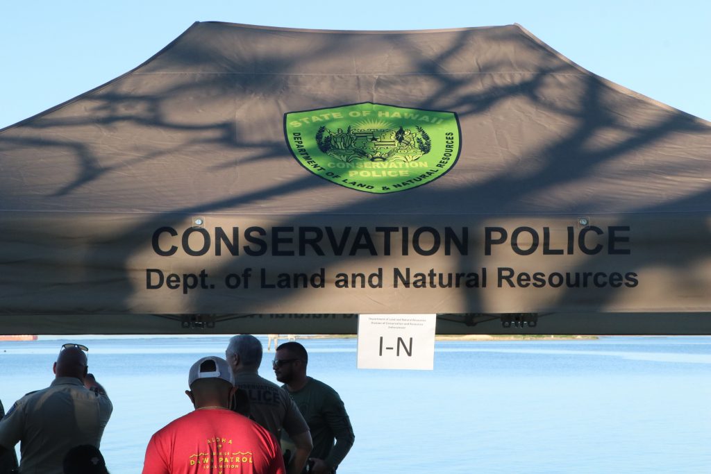 “The unique part of DOCARE,” explains Lt. Carlton Helm, “is we work both land and sea, mauka to makai. We need officers who are comfortable in the ocean as well on trails and other undeveloped property under the DLNR’s jurisdiction. We’re a specialized law enforcement agency with a sharp focus on protecting resources.”