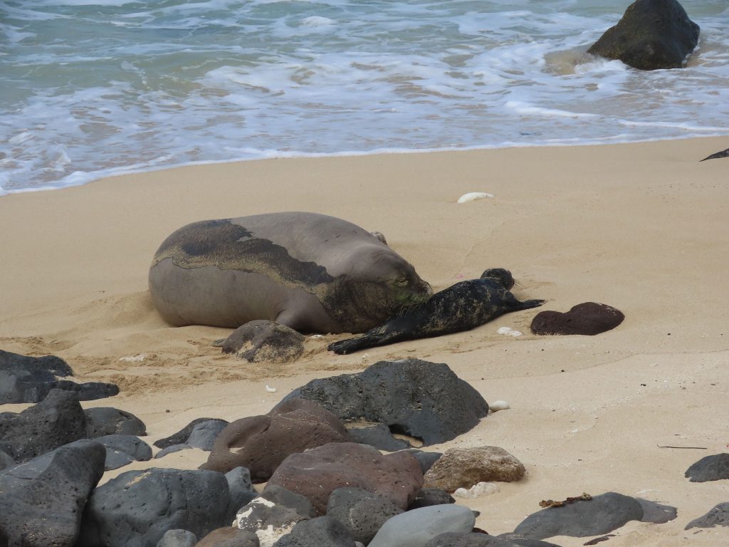 DLNR, NOAA Fisheries, and Hawai‘i Marine Animal Response will continue to actively monitor the moms and their pups for the next five to six weeks.