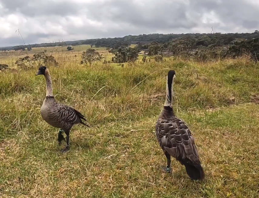 (HILO) – One had a toe injury. Another had a broken leg. A third nēnē (Hawaiian goose) had a wing amputated. Earlier this month, all three birds were released into the Hawai‘i Island Nēnē Sanctuary, on the lower slopes of Mauna Kea.