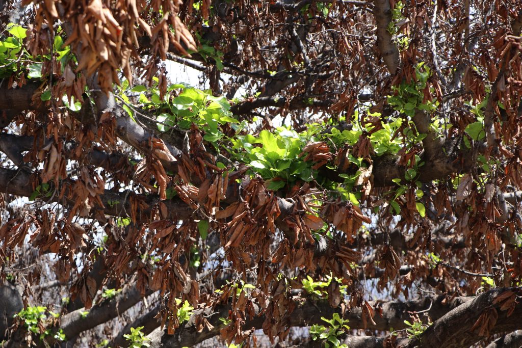 First, the banyan tree. “After not being here for two weeks and looking at the new sprouts, especially on the makai side of the tree it is enlightening and exciting to see all the new growth, but also how high up in the canopy it is,” Nimz said.