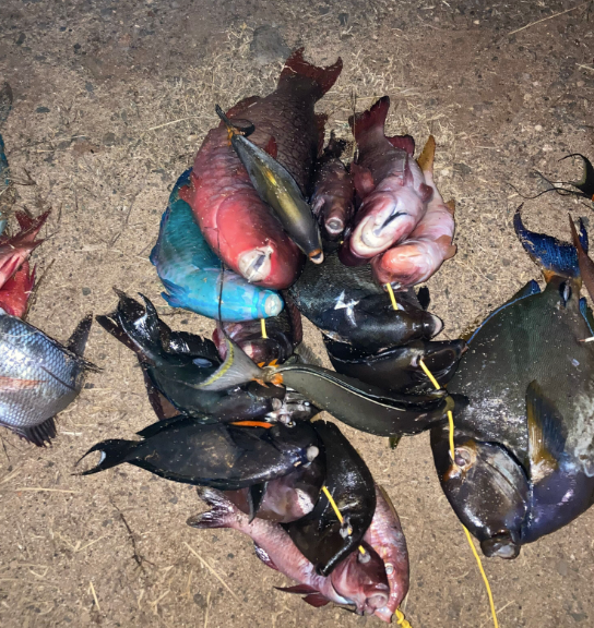 DOCARE Chief Jason Redulla said, “After further investigation our officers found the suspects had more than 150 fish of various species in their possession, including regulated species of Manini, Kala, Uhu, and Weke.”