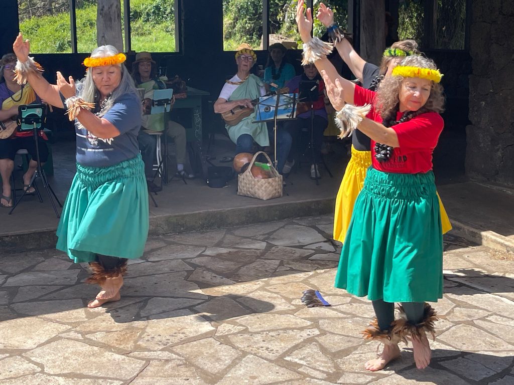The hālau performed several original mele, including one that describes the beauty and characteristics of several at-risk species like, ‘akikiki and kiwikiu, two of the honeycreepers expected to completely disappear from Hawaiian forests imminently.