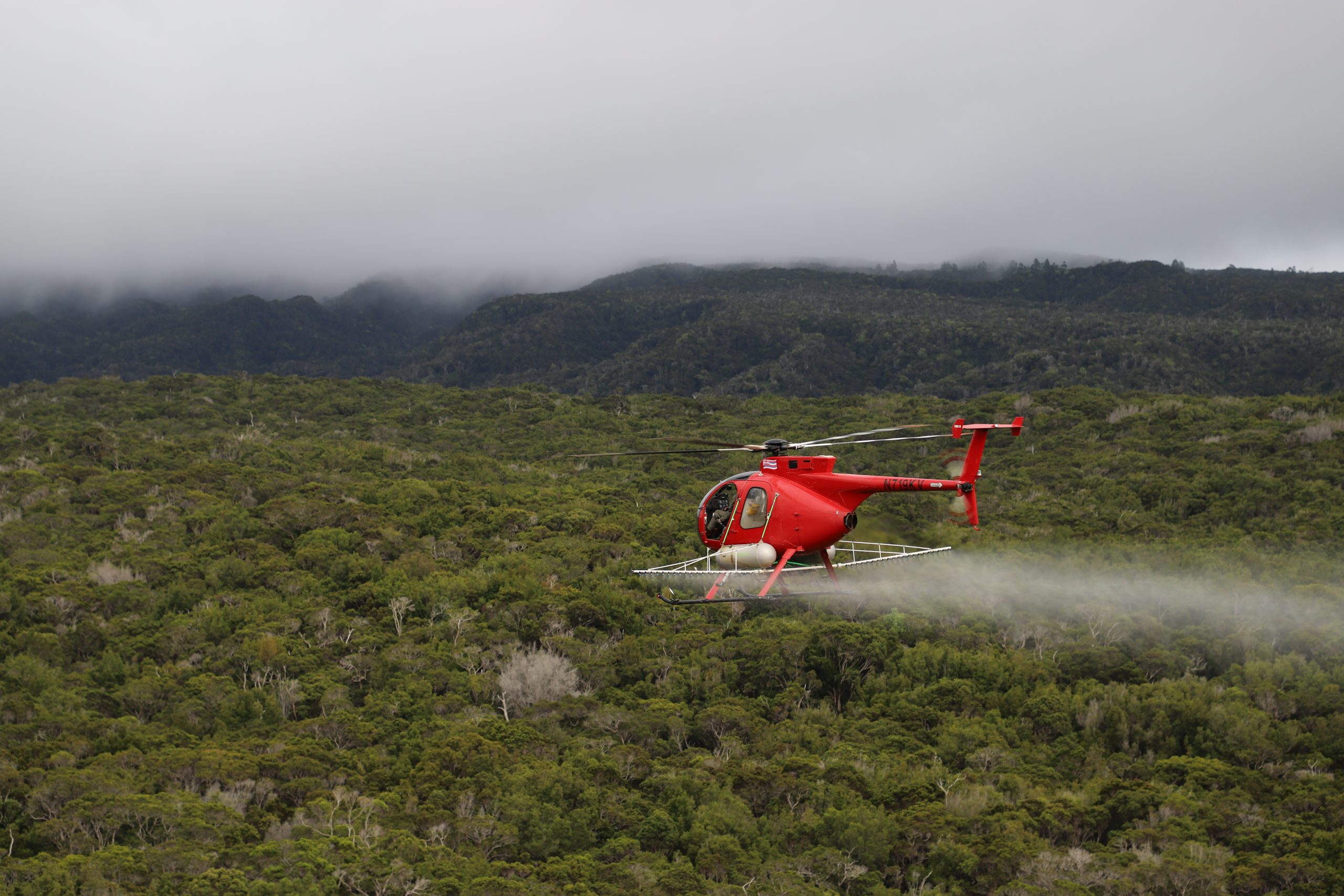 (ALAKA‘I PLATEAU, KAUA‘I) — An airborne war against avian-malaria-spreading mosquitoes is actively underway on Kaua‘i, and on Maui.