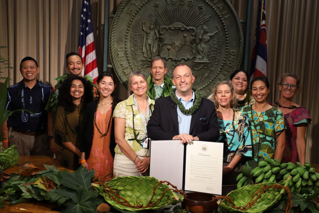 “Community forests are the trees in our neighborhoods, yards, parks, schools, and along our streets,” said Gov. Green. “These forests can include native species, but also non-invasive beneficial trees like ‘ulu, niu, mango, and others.