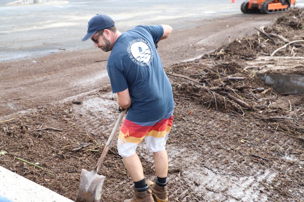 The popular East O‘ahu boat ramp at Maunalua Bay was unusable this morning, with both sides full of floating vegetation brought in by the weather event. A three-person DOBOR crew used a small front loader, shovels, and brooms to clean up the mess and they expected to have the ramp cleared by the end of the day.
