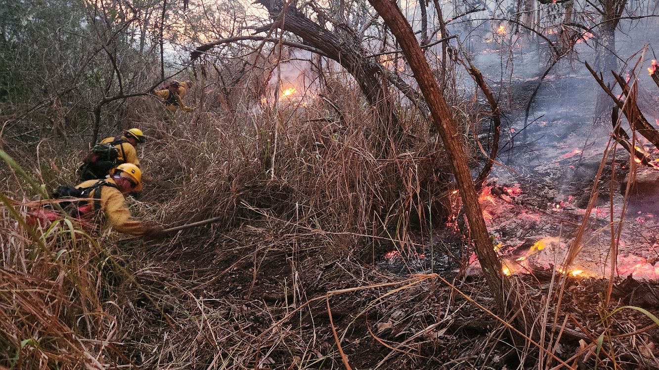 The fire has burned approximately 600 acres of agricultural and forest land and is 60% contained overall. However, in the Forest Reserve, where steep terrain and dense brush make firefighting difficult, containment is only 30%.