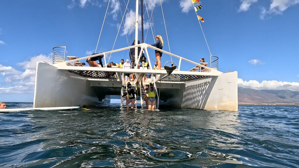 Participants boarded a vessel provided by Trilogy Expeditions and traveled to key reef sites along Maui’s leeward coast. At Kalepolepo in North Kīhei, presenters highlighted the impacts of sediment runoff and poor water quality on coral reefs that are approaching a tipping point. Attendees then visited Keālia Reef, where cleaner waters have enabled corals to thrive, illustrating the contrast between struggling and resilient reef systems. At both sites, participants jumped into the water to see the difference for themselves.