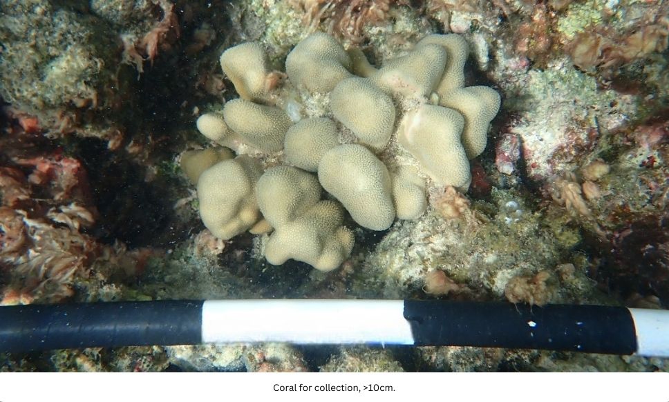 Corals that meet these requirements are carefully dislodged from the substrate by HCRN staff using various tools. The process is photographed and cataloged in the HCRN database to maintain a chain-of-custody for every coral collected.