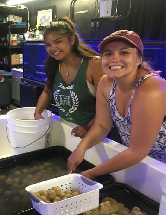 The HCRN periodically hosts full-time interns through the KUPU Conservation Leadership Development Program. In this 11-month program, members have to opportunity to work directly with professional coral restoration staff and receive practical training on coral husbandry, aquarium design and construction, coral outplanting and monitoring, larval rearing, phytoplankton culturing, and complete a directed research project under the supervision and guidance of DAR and Nursery staff.