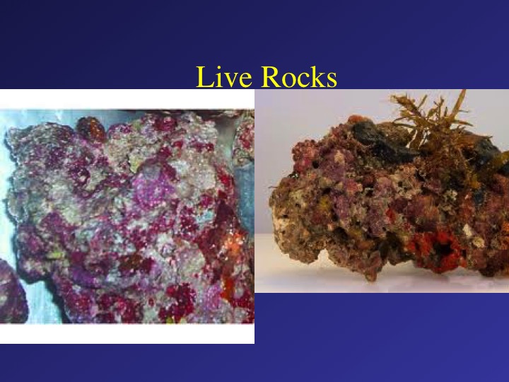 Live rocks Unlawful to take, break or damage, any live rock, defined as any natural hard substrate to which marine life is visibly attached or affixed. Unlawful to damage any live rock by any intentional or negligent activity causing the introduction of sediment, biological contaminants, or pollution into state waters. Unlawful to sell any live rock. HAR 13-95Slide71