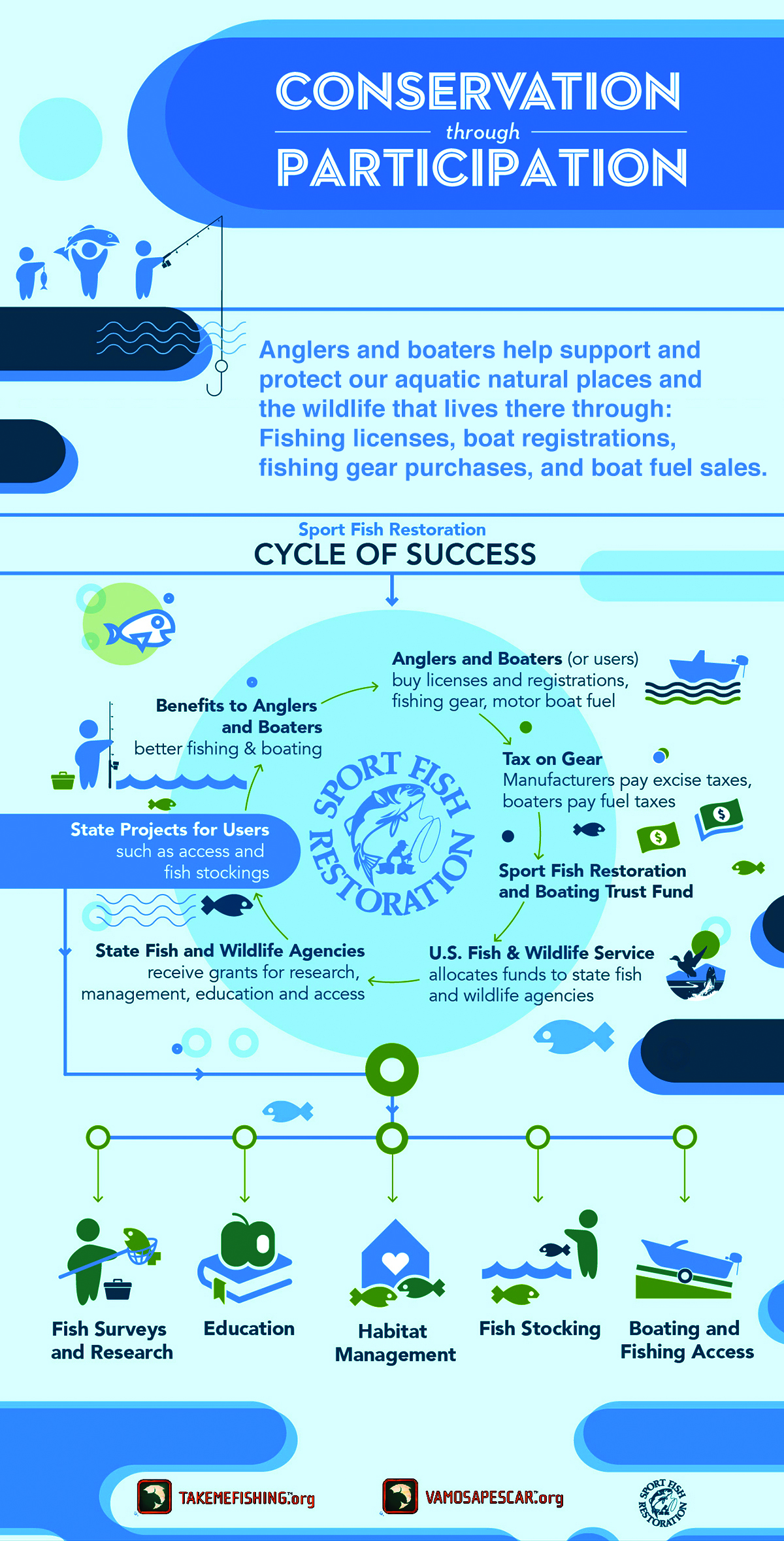 Hawai‘i’s Division of Aquatic Resources (DAR) receives between 3.5 and 4 million dollars every year from the U.S. Fish and Wildlife Service’s Sport Fish Restoration (SFR) Program. 85% of that money is used for projects that are designed to conserve and enhance fish populations and their habitats, and the sport fishing opportunities they provide. The remaining 15% is spent on boating access projects. It’s a “user pays, user benefits” system of resource management, as depicted in this diagram.