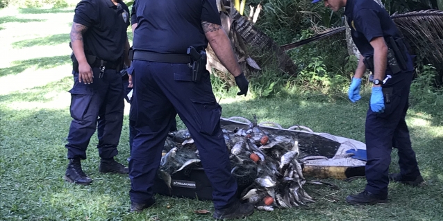 (Honolulu) – On Thursday, officers from the DLNR Division of Conservation and Resources Enforcement (DOCARE) were on routine patrol in windward O‘ahu when they observed a lay net violation in progress. This was on Kawa Stream, just makai of the Kahana Bridge.