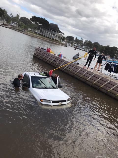 (Honolulu) – While attempting to either launch or retrieve a jet ski at the Haleiwa Small Boat Harbor ramp last Saturday (Jan. 12, 2019) the driver of a truck, towing a ski trailer, jumped out to get help when his vehicle began slipping down the ramp. By the time he got to the parking lot, both truck and trailer were completely submerged.