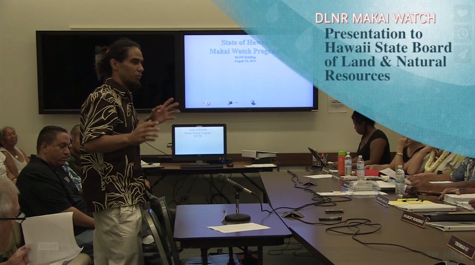 For 10 years now Makai Watch volunteers have helped be the eyes and ears for the protection of special places across Hawaii. Makai Watch State Coordinator Luna Kekoa described the program today for the members of the Hawaii State Board of Land and Natural Resources.