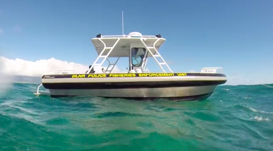 (Kahului, Maui) – The three DLNR Division of Conservation and Resources (DOCARE) officers, assigned to the North Maui Community Fisheries Enforcement Unit (CFEU) are all Maui natives. They have a real and special connection to the 17-miles of state-controlled ocean water on Maui’s north shore. The CFEU, a partnership between the state with initial funding from Conservation International and the Harold C.K. Castle Foundation, was established to put sharp focus on a heavily used area; both by people recreating and by fishers. It’s those who fish that Officers Jeffrey Kinores, Nathan Hillen, and Joshua Rezentes focus their efforts on. In the three years since the establishment of this special unit, they’ve been able to shift their attention from enforcement to outreach and education. Also, while the first two years efforts were focused on illegal netting, the favorable weather conditions this past year saw officers shift to monitoring diving activity. In CFEU’s first year of operations (2013-2014), officers issued 41 total citations; 22 were for net violations. For the period beginning in 2015 and continuing until today, they issued 31 citations, including seven for netting violations and 14 for diving violations. That includes illegal take of lobster and undersized fish or exceeding bag limits.