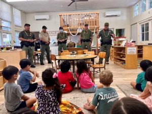 As part of the enforcement program, the division provides several information and education services. Posters, stickers, and coloring books are made available in identifying marine animals, closed season periods, protected species and more. DOCARE officers are available upon request to appear and speak at schools, youth organizations and community events. Often times officers provide youth material of our endangered species of native birds, and insects. They also work in partnership with other DLNR divisions that have a wide variety of coloring books, stickers, finger puppets, and face masks.