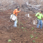 (LIHUE) – For the last few weeks a large excavator has been digging hole after hole on the steep slopes of state forest reserves in the Kokee area of Kauai. Some 3,000 acres of land were scorched during a series of wildfires there during the summer of 2012. The excavator is preparing the ground for the hand planting of 20,000 foot-tall koa seedlings.